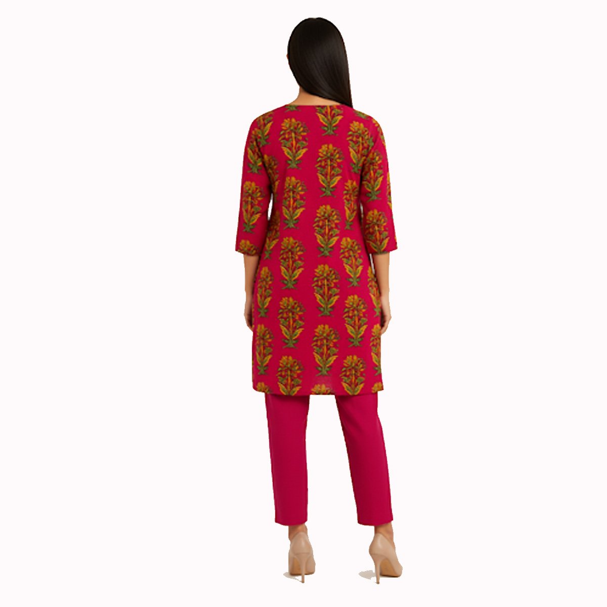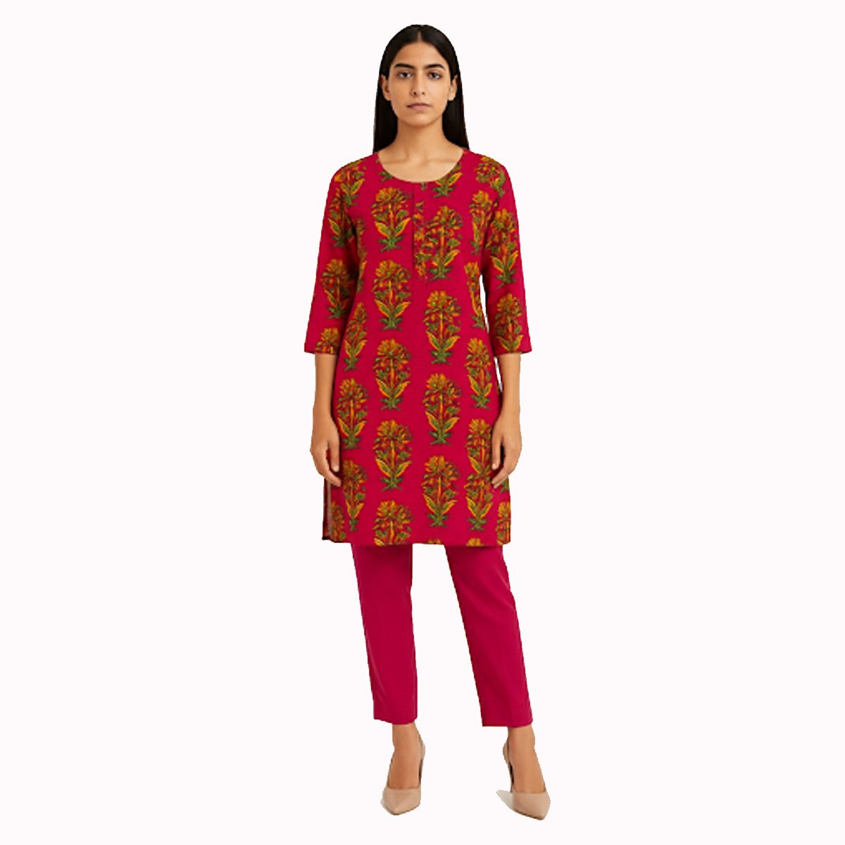 Red Khaddar Printed Suit, designed for comfort and timeless style.